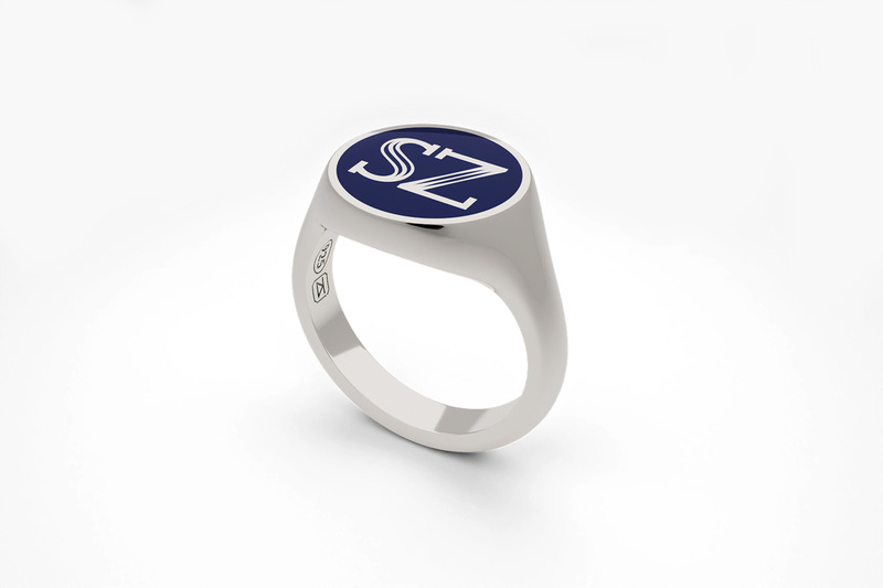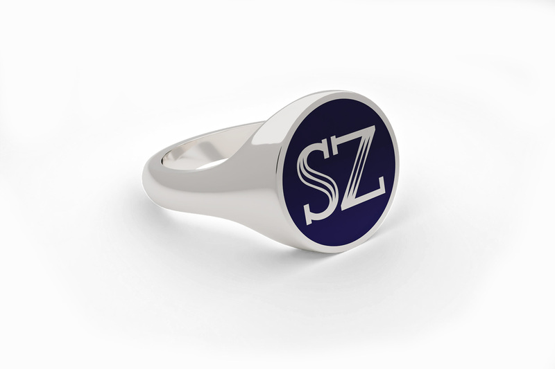 Round signet ring with your monogram. Handcrafted in silver 925. The ring is available in burgundy red, navy blue and black ceramic enamel.